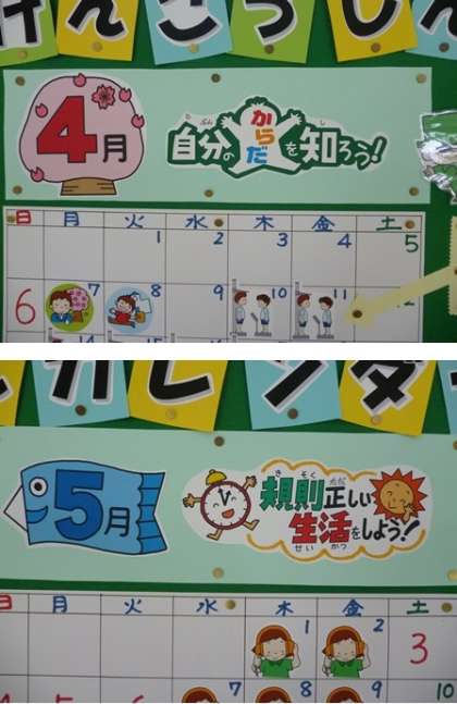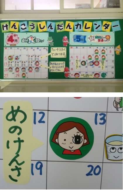 保健室の掲示板に健康診断カレンダーが掲示されています。