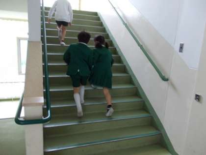 2年生が1年生をつれて、校内を案内しながら回っていました。