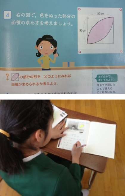 複雑な図形の問題を学習するにあたり、じっくり学習を進めたいと考える児童が習熟度別担当のところで学習をしました。