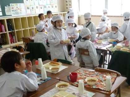 給食では、この3つのグループがそろっています。バランスよく食べましょう。