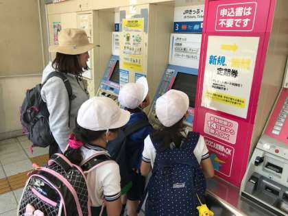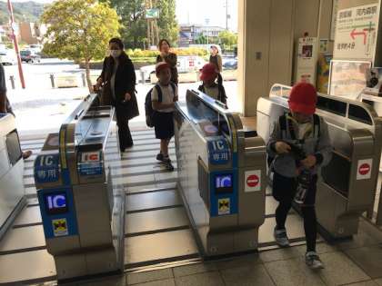 切符も子ども用のボタンを押して自分で買えました。そして、改札機に切符を通すと…ピョピョピョ??