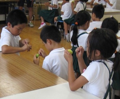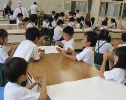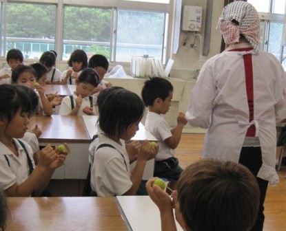 地域の方に来ていただいて、梅ジュースの作り方を教えていただきました。