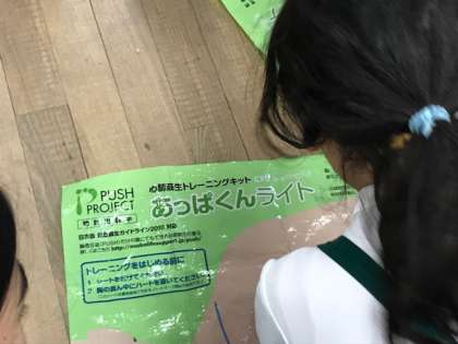 土曜授業で地域と連携して防災訓練を行いました。地域の防災リーダーの方に指導をして頂きました。