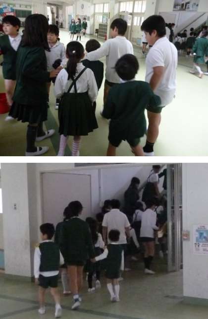 放送の合図で6年生が1年生を教室まで迎えに行き、それぞれの話し合い教室で第1回目のたてわり集会がありました。