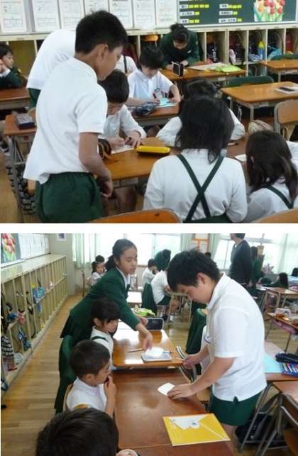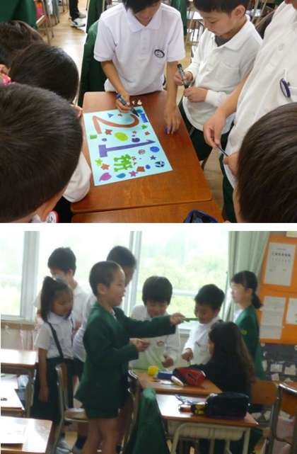 低学年の児童は、紙にバランスよく書くのが難しいので、きょうだい学年の児童が一生懸命お手伝いをしていました。