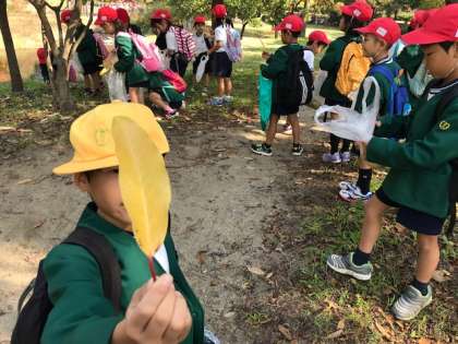 色とりどりの葉っぱを見つけました。春とも夏とも違う、秋の色。爽やかな空気のなかで活動できました。