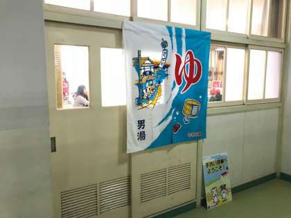 入口からワクワクするお風呂屋さんの暖簾の演出です。