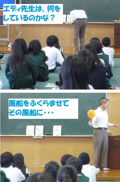 今日の5年生の授業では、カラフルな風船を使って勉強しました。