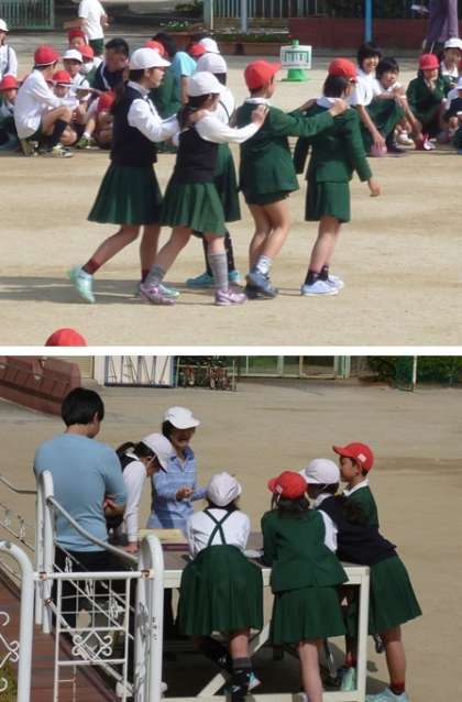 最後、楽しく集会が終わった後、朝礼台付近で反省会を行いました。
