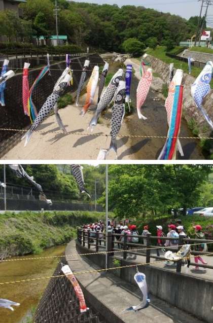 府民の森 ほしだ園地のに向かう途中にある天の川に「こいのぼり」がたくさん泳いでいました。