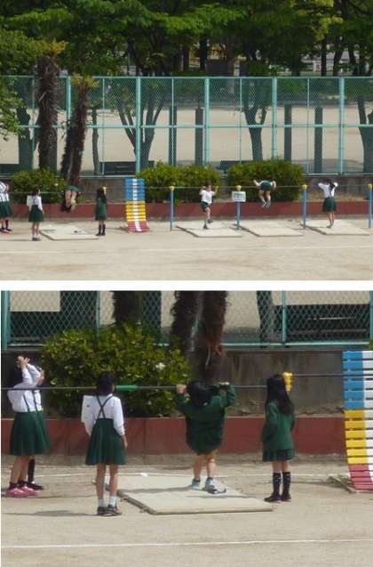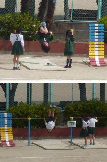 みどり小学校では、今、鉄棒の練習に全校あげてとりくみ中です。