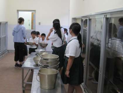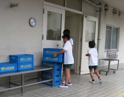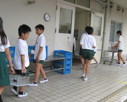 当番の仕事は、給食室の中だけではありません。牛乳瓶を返す場所は給食室の外にあります。
