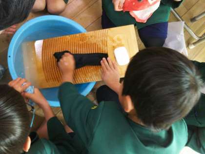 手が冷たくなりながらも一生懸命に楽しそうに取り組んでいました。