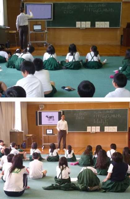 電子黒板に絵カードが出るたびに、