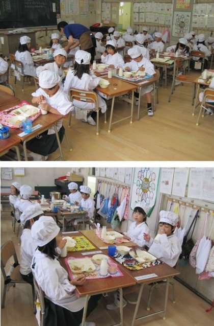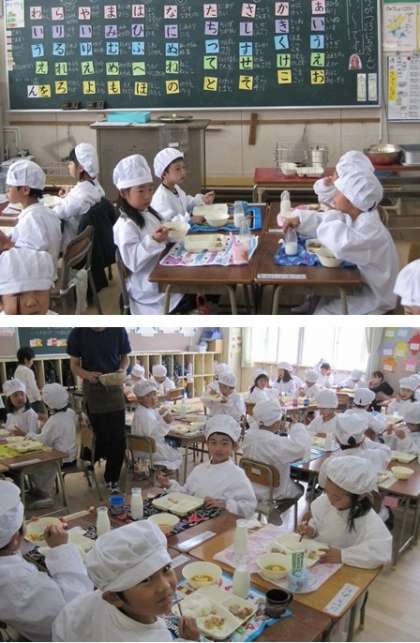 1年生 給食いっぱい食べてます