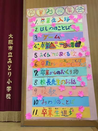 運営委員会を中心に、卒業お祝い集会を進めることができました。先週の縦割り集会から卒業生へのプレゼント作りとお祝いの歌の練習を重ね立派に歌うことができました。卒後生もリコーダーで素晴らしい演奏し手作りの雑巾をプレゼントすることができました。いよいよみどり小学校も卒業式に向けて一丸となって進んで行っています。