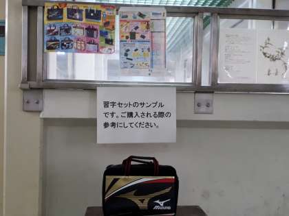 習字道具セットについて、3年生の教室前に見本を用意しています。
