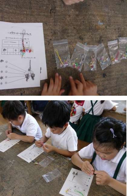 3年生クラフト「フラワービーズを作ろう」の様子です。