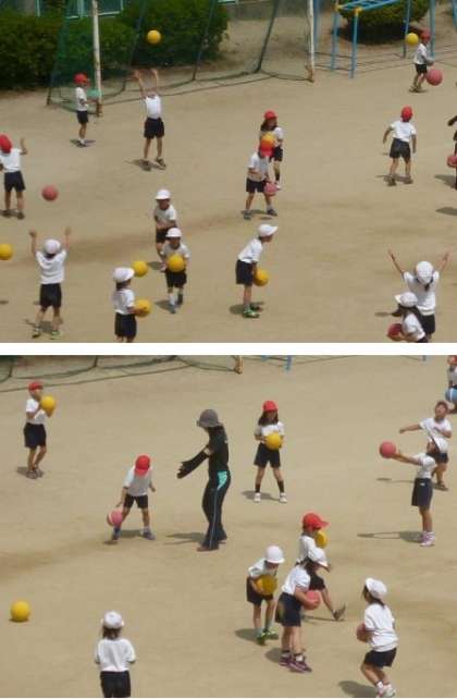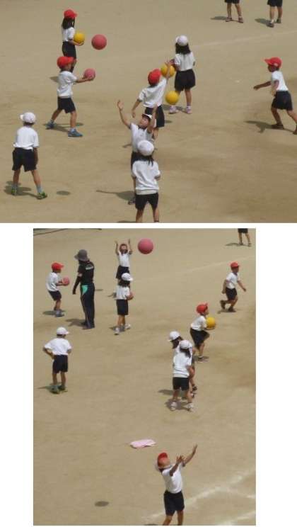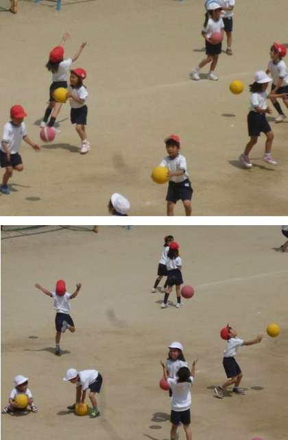 ボールと一緒にぴょんぴょん跳ねてる児童もいました。