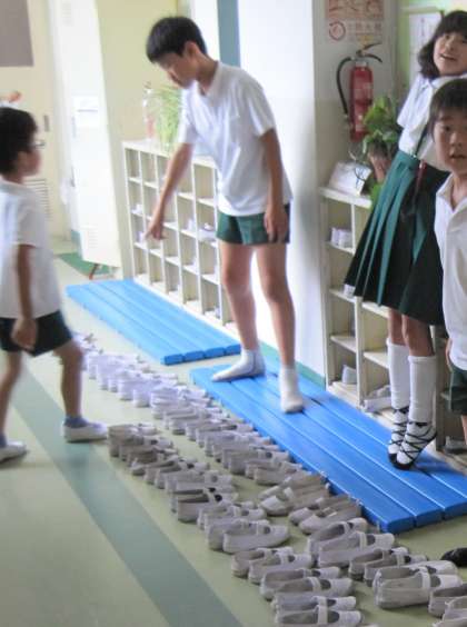 図書室の外では、情報委員会の児童が、やってきた児童に、上靴を並べるように声かけをしていました。入り口前に上靴が整列していて、見ていてとっても気持ちいいなぁと思いました。