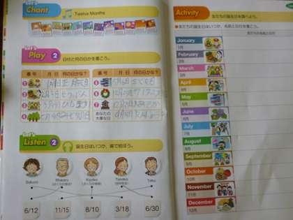 誕生日はいつ?という話から、日付の言い方を学習しました。