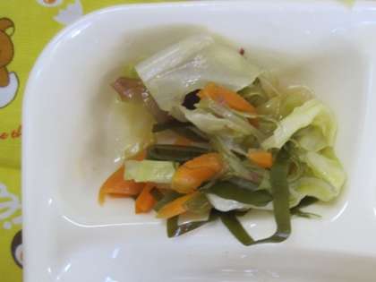 ミックス海そうは、いろいろな海そうを食べやすい大きさに切って、塩をまぶしたものです。材料の海そうは、「こんぶ」「わかめ」「くきわかめ(わかめの茎)」「赤とさかのり」の4種類です。