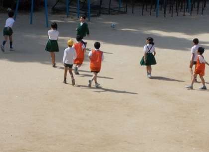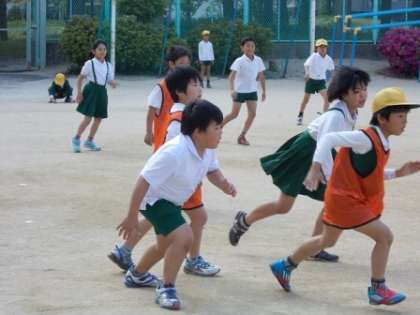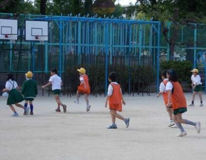 早々に児童が下校した運動場では、いきいき活動に参加している児童がサッカーをして楽しんでいました。オレンジ色のゼッケンをつけてゲームをしているのは高学年です。
