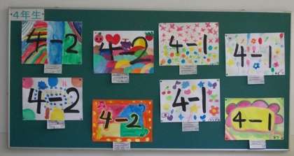 4年生は、墨と絵具を使って「学級の旗」を作っています。