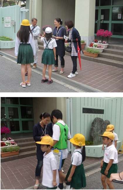 正門前のチェックポイントで待っていた保護者の方に声をかけ、運動場で待っていた担当の先生にゴールを確認してもらって終わました。