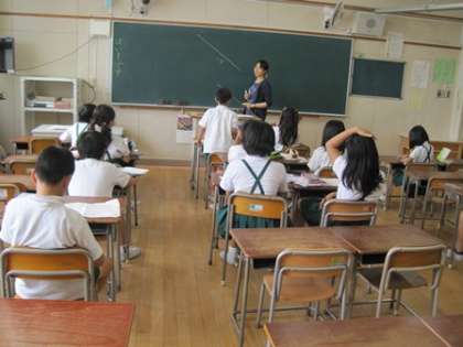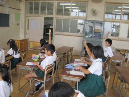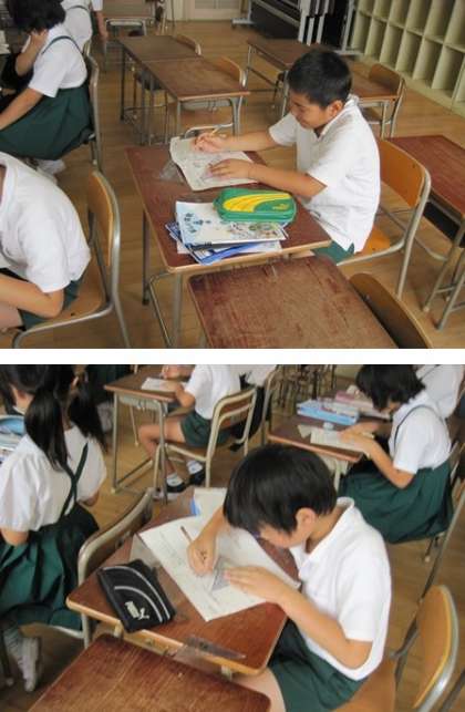 一人ひとりの児童によく目が行き届くように学級を半分に分けて学習しています。15人から16人で学習しているので、三角定規にあてかたなど分かりにくいときには先生に質問しながら学習していました。