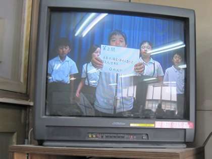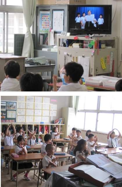 空模様が怪しかったので、今日の集会は放送室からのTV集会になりました。