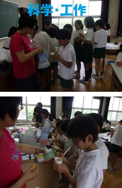 科学・工作は、さとう水に重曹とクエン酸を混ぜて「サイダー」を作っていました。