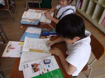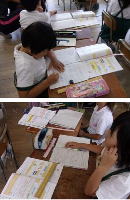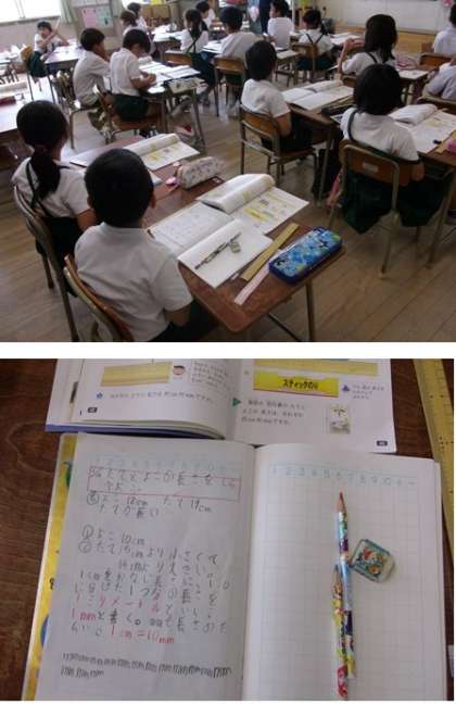 算数ノートに「mm」を書く練習もいっぱいしてありました。