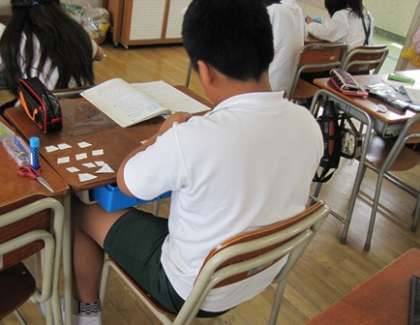「合同な図形」の学習で、この単元は今日で2回目になります。後、5〜6時間このグループで学習する予定です。