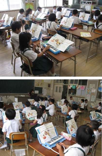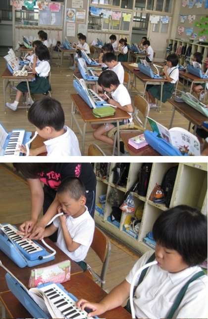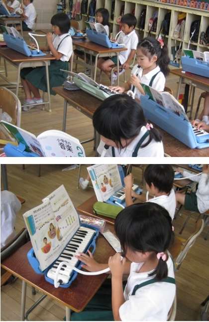 2年生が音楽の時間にけんばんハーモニカを練習していました。