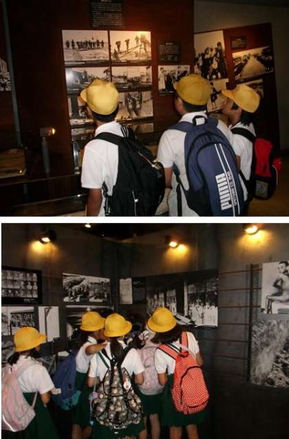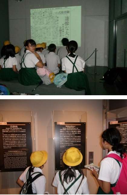 夏休み前に、ピースおおさかで第2次世界大戦についての展示物を見学しました。戦争の悲惨さを伝える資料もありますが、児童はメモをとりながら熱心に見学していました。
