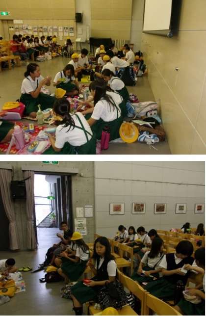 雨が降っていたので、昼食を心配したのですが、ピースおおさかのホールで昼食を食べさせていただきました。
