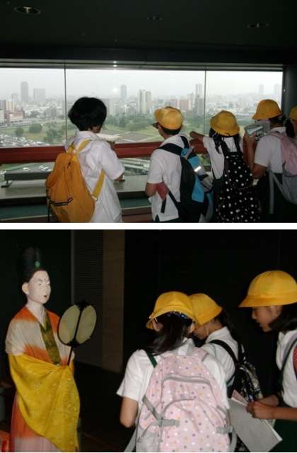 まず、最上階へ上り、建物の上から「なにわの宮」を見学してから館内の展示物を見学していきました。