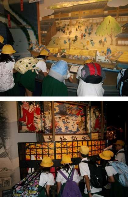 上から下の階に下りていくごとに、なにわの宮の時代から現代へと時が進んでいく展示方法になっています。