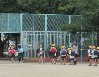 話し合いを2時10分に終えて、集団下校のために 運動場へ集合しました。