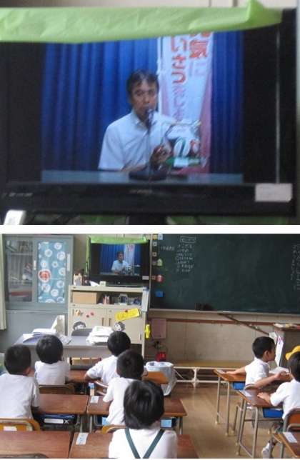 雨が降っていたので、今週の児童朝会は「テレビ朝会」になりました。