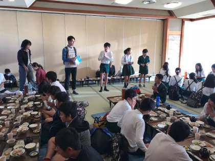 大阪より少しひんやりとした朝を迎えています。朝の集いから、朝食です。
