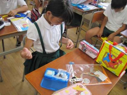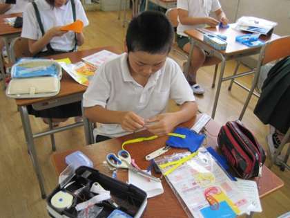 「きんちゃく」や「ペンケース」「ティッシュケース」「小銭入れ」などを作っている児童が多いです。
