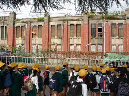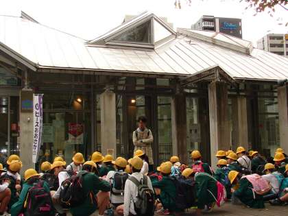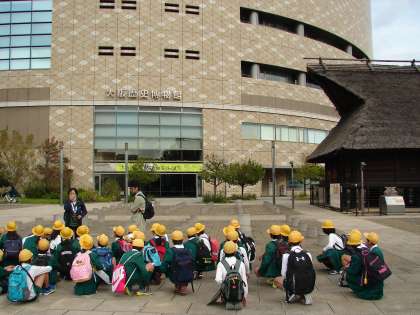 昨日、日本の歴史・戦争と平和をテーマに大阪城方面へ学習をしに行ってきました。はじめに大阪歴史博物館で展示物等を見学、続いて大阪城内にある戦跡をめぐるフィールドワークを行いました。昼食後、ピースおおさかで戦争資料を見学後、学習映画を鑑賞しました。子どもちは、班行動で社会見学ワークシートを手に熱心に書きとめていました。