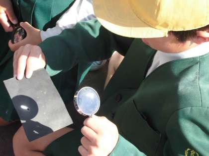 本日、集めた日光の明るさとあたたかさの学習をしました。虫眼鏡で集めた日光を、黒い紙に当ててみました。においやけむりに大きな驚きの声が起こりました。紙が焼けた班もあったようです。