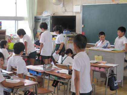 5年生が国語「立場を明確にして書こう」の学習で2学級を3分割して授業をうけています。