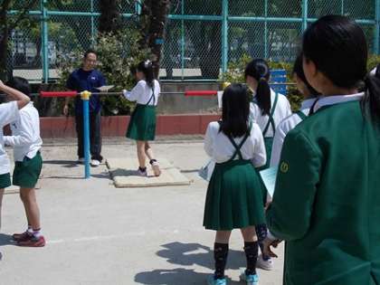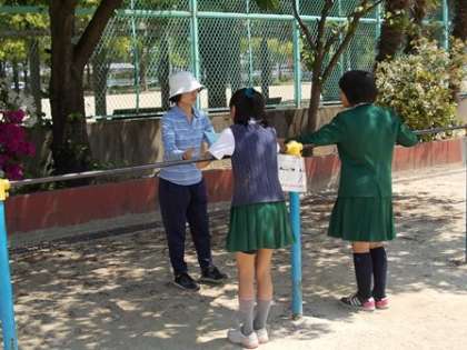 がんばりカードを先生や体育環境委員会の人に見せて、技ができたかどうか判定してもらいます。