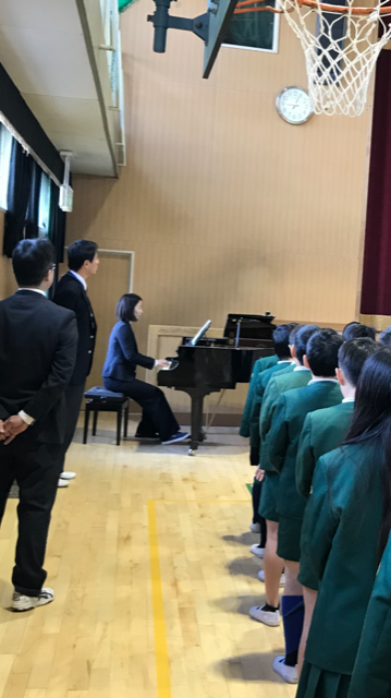「たくさんの、ありがとうを心を込めて言いましょう。」という校長先生のお話がありました。校歌も元気に歌いました。