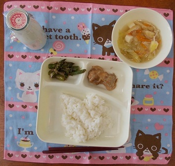 グリーンアスパラのいためもの ごはん 牛乳 576kcal