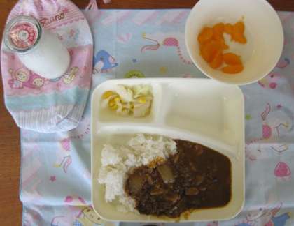 なすは日本全国の畑やハウスで栽培され、1年中食べることができます。今日の給食では、夏野菜のカレーライスに入っています。なすのおいしい季節は、たくさん出回る6月から9月です。
